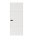 Deze deur met horizontale, doorlopende groeven is erg trendy. Qua kleur kun je twee dingen doen: je gaat voor een strakke, eenvoudige uitstraling en kiest voor een volledig afgelakte deur in ‘Deep Black’ (RAL 9011) of ‘Pure White’ (RAL 9010). Of je kiest voor een meer natuurlijke look. In dat geval ga je voor ‘Charcoal Oak’ of ‘Natural Oak’.